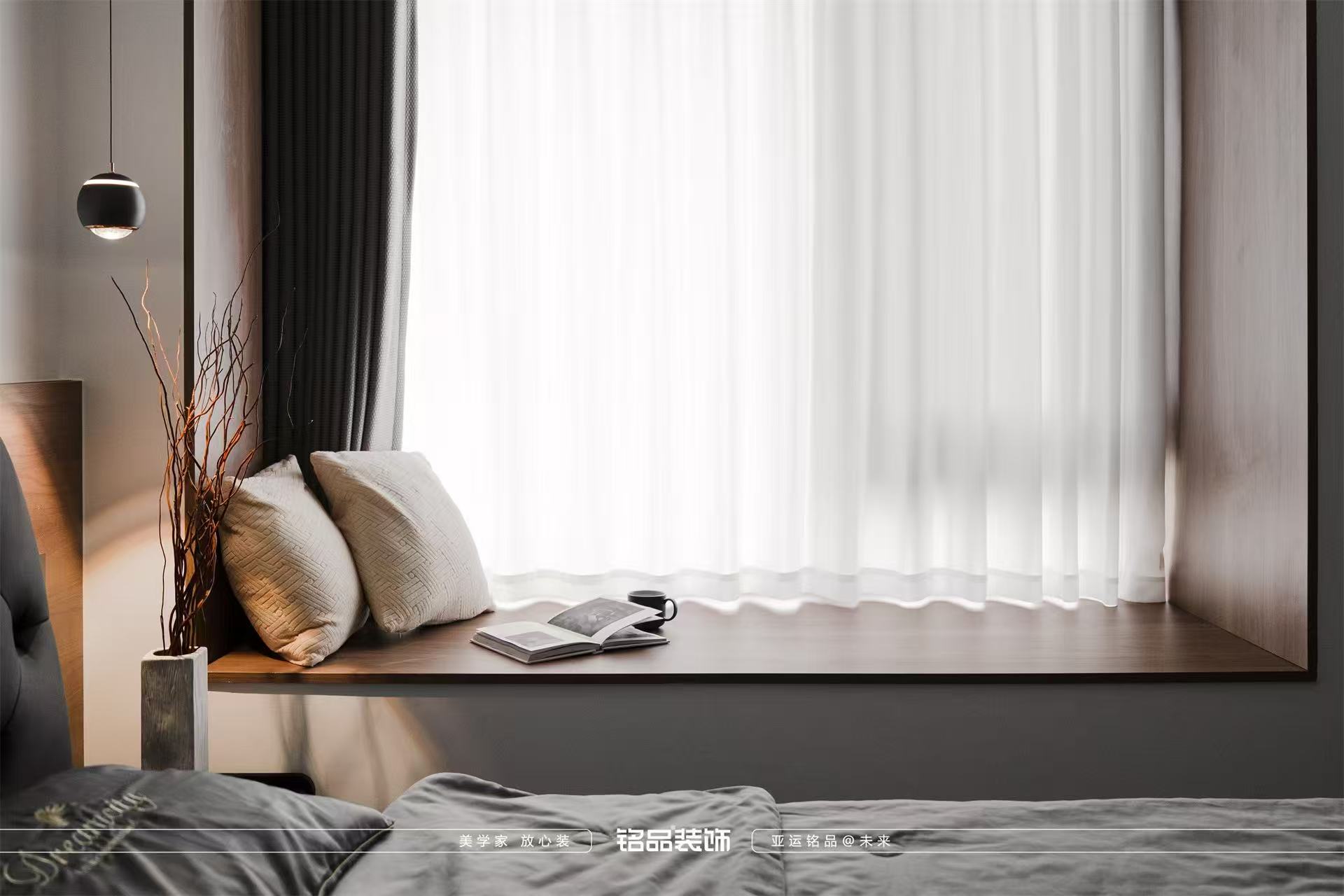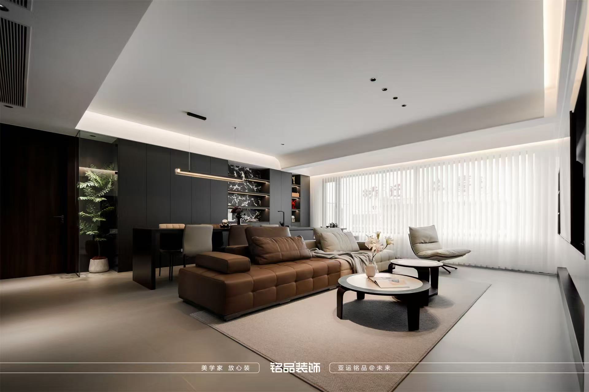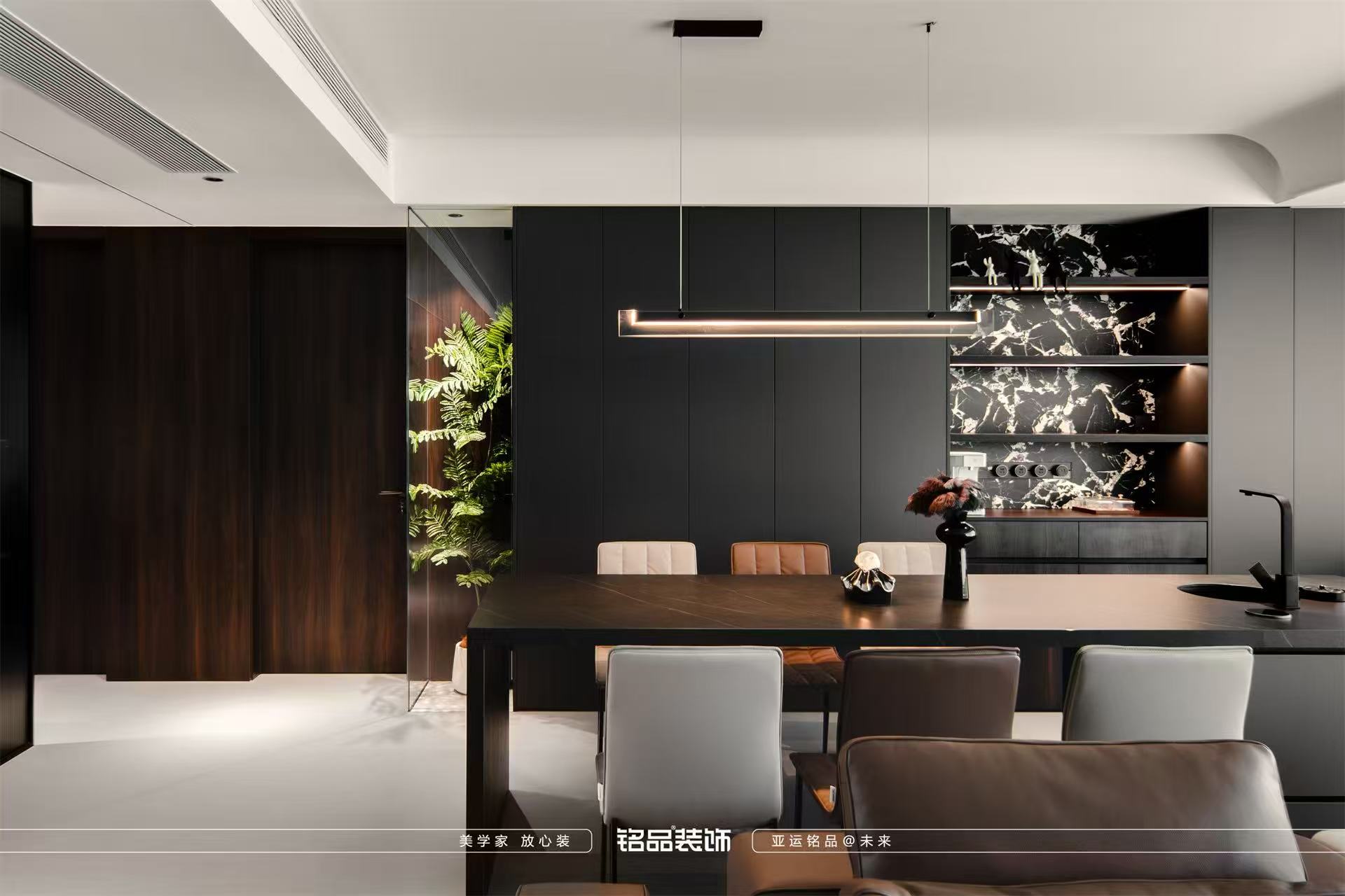 整体选择黑白色调白色,黑色,胡桃木色,营造舒适高端宁静的氛围
